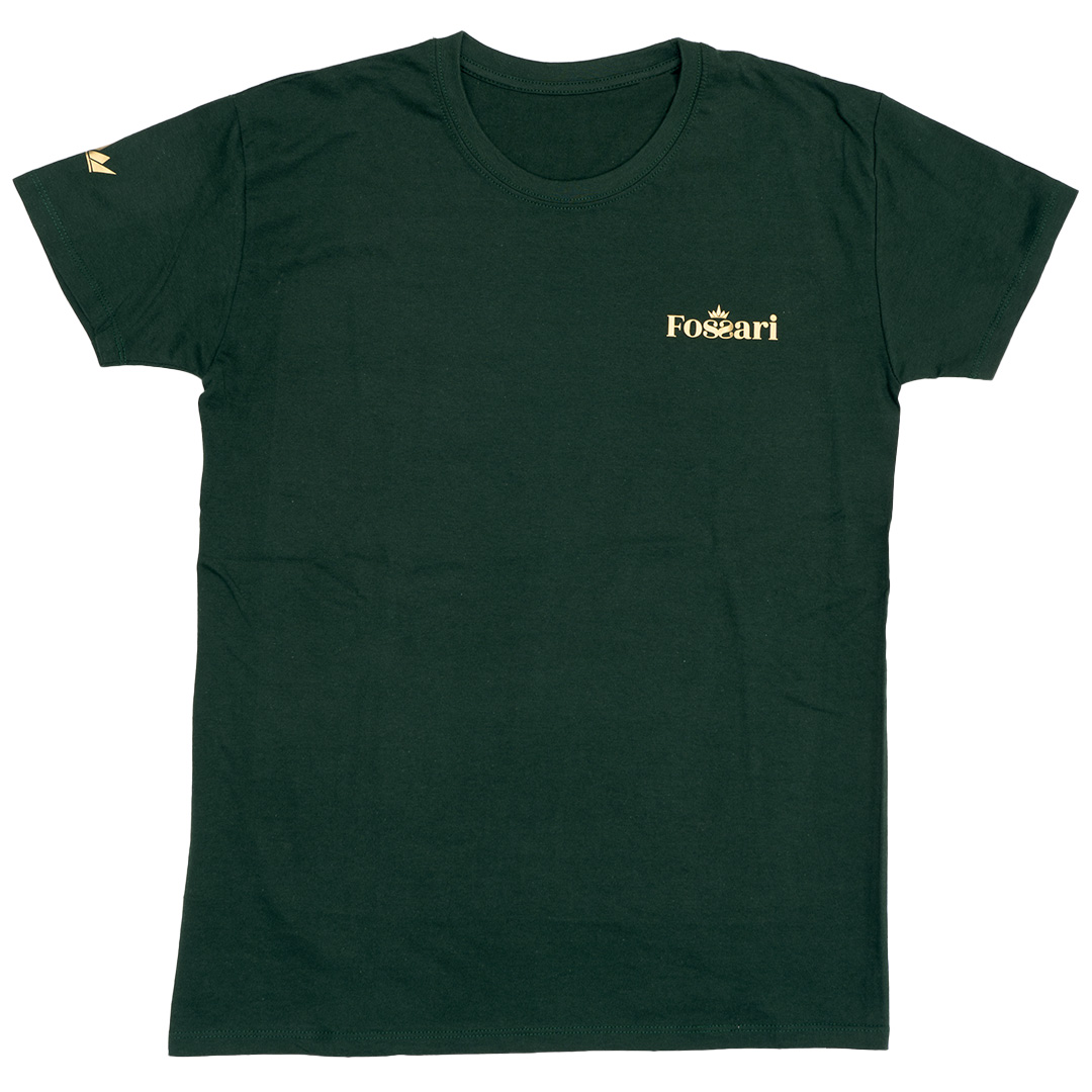 T-SHIRT verde con logo sul petto e corona Fossari® sulla manica destra.