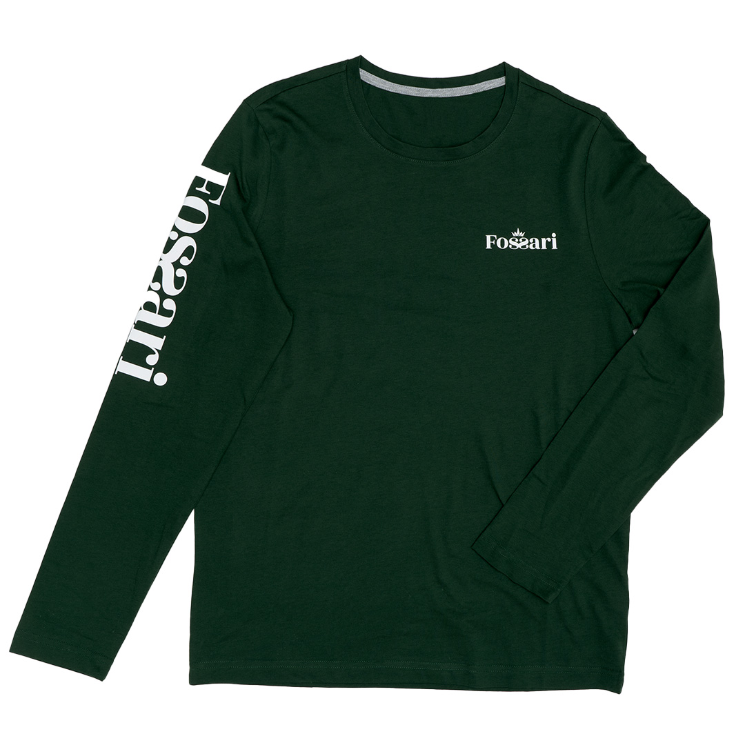 Tshirt verde a manica lunga con logo sul petto e scritta Fossari® sulla manica destra.