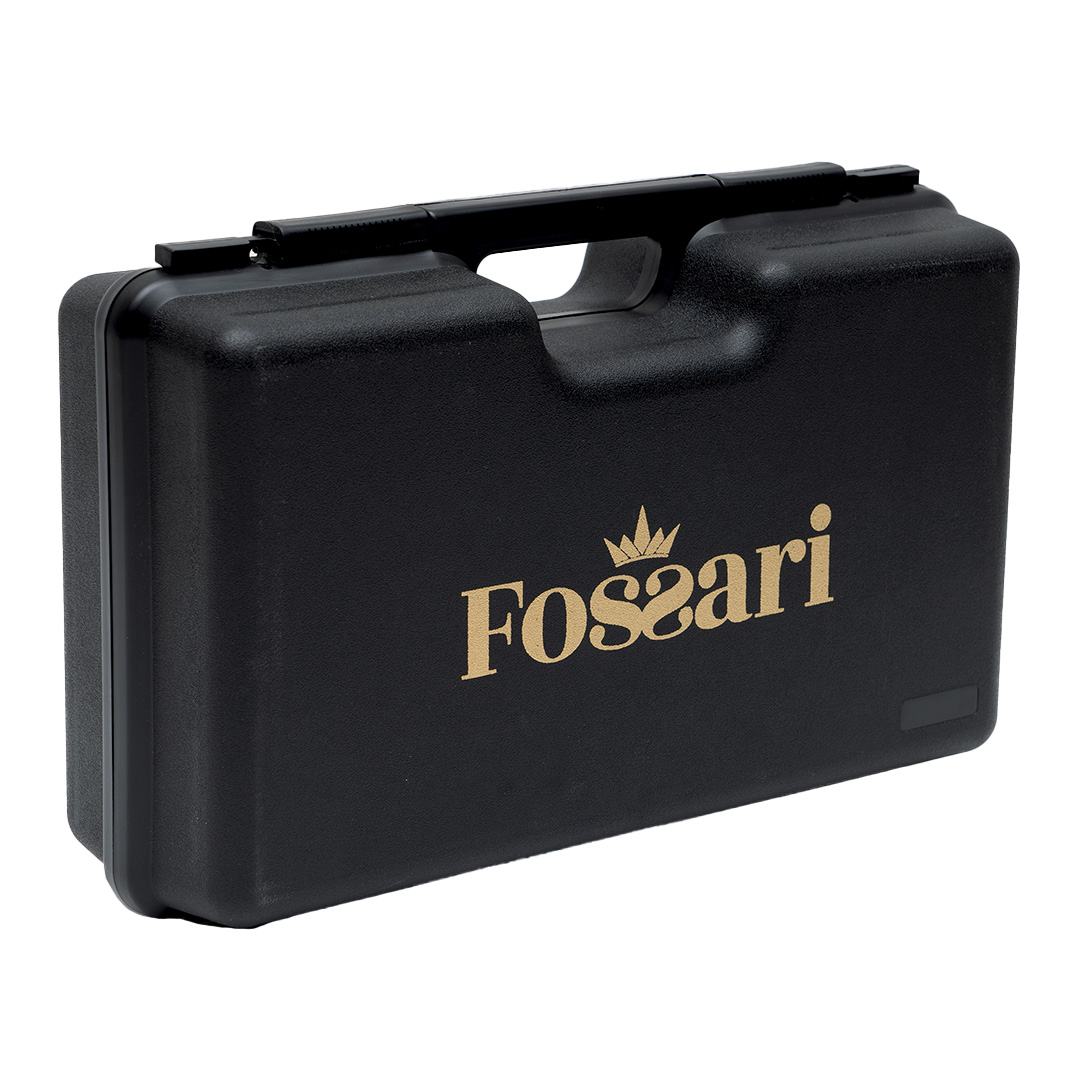 Valigetta nera in ABS per 200 munizioni con logo Fossari® oro.
